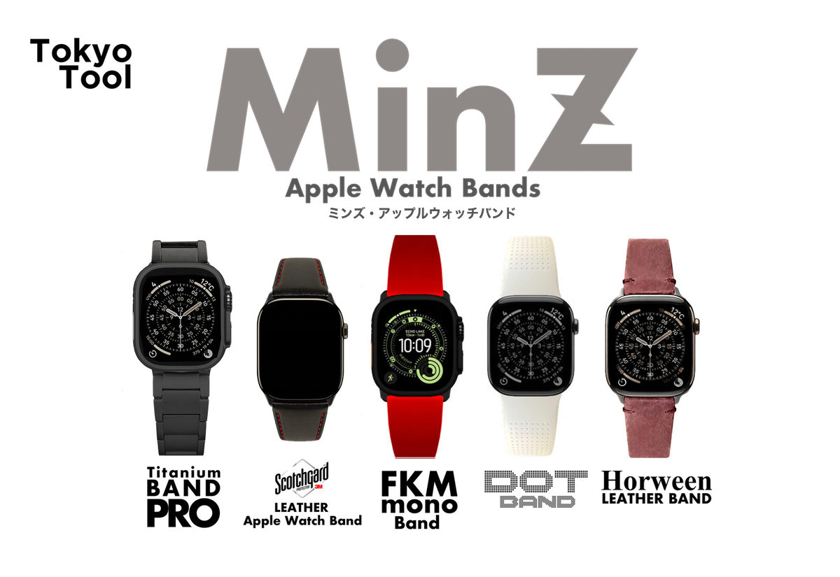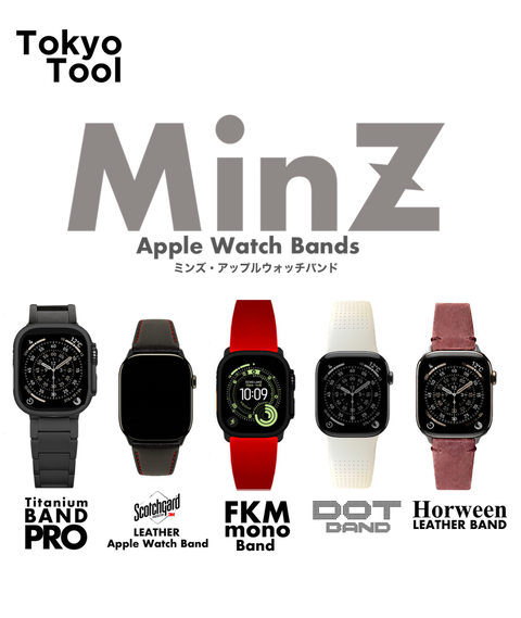 【Apple Watch】Series11〜1、Ultra 3/2/1完全対応!チタニウムバンドの定番<MinZチタニウムバンド>2/1、撥水・防水の高品質国産レザー使用のスコッチガードレザーウオッチ、ミニマリスト向けFKMスポーツバンド<MinZ FKM mono Band>など... |