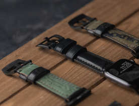 【Apple Watch】入手困難となっている、老舗ホーウィン社シェルコードバン使用。316Lマリングレードのステンレススチール金具類との絶妙デザインで仕上がった「老舗の歴史・ミーツ・Apple」という趣のアイテム。裏面レザー部分はあなただけの一点モノ。海外主要Mac誌大絶賛で、かなりヤバイことに。