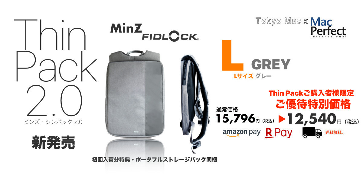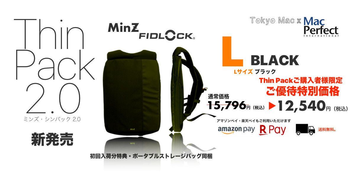 「Thin Pack 2.0発売記念」サービスとして、初回入荷分限定でポータブルストレージバッグを同梱。