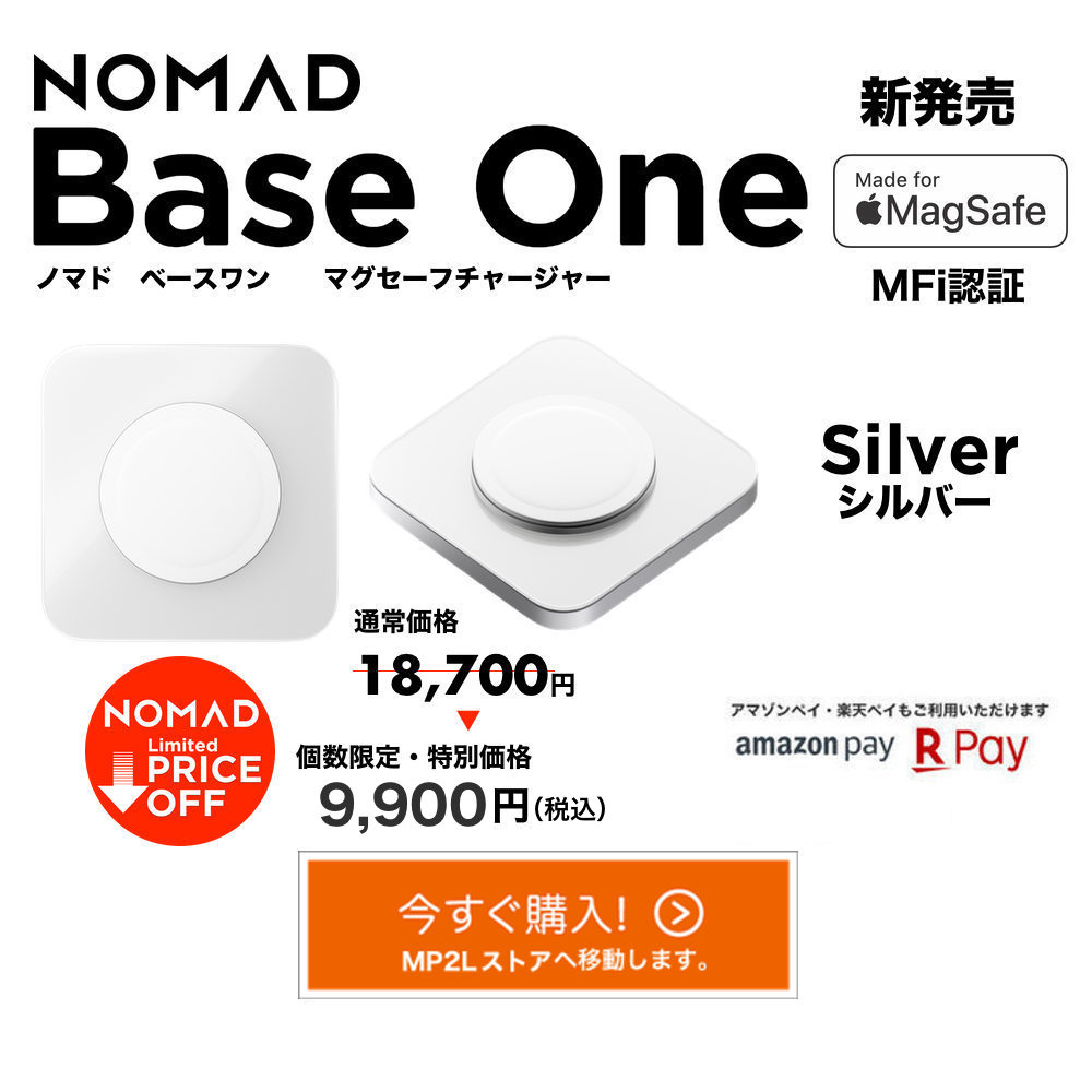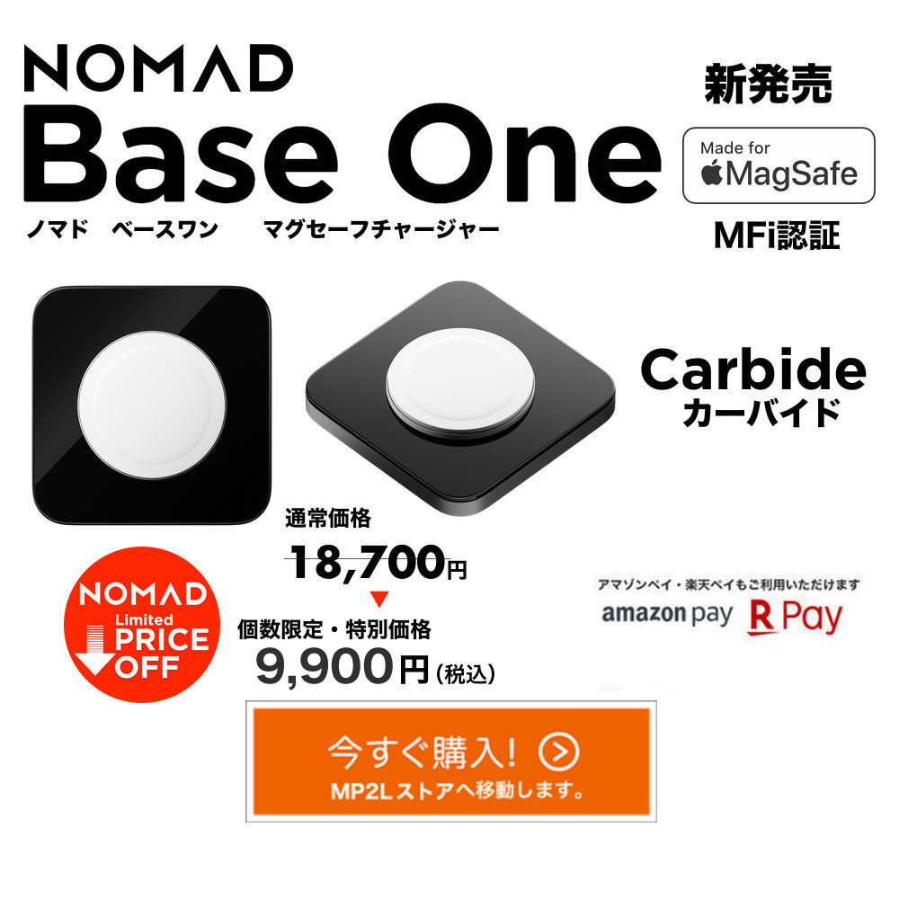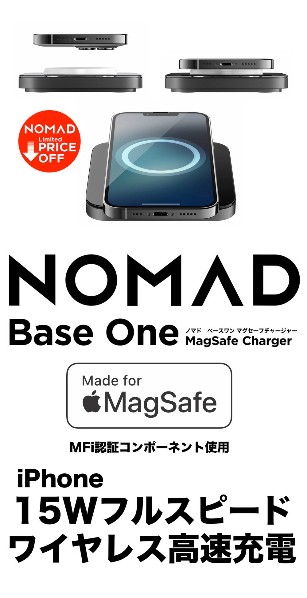 今まで、Lightningケーブルよりも遥かに遅い充電スピード(7.5W)のチャージャー、あるいは、MagSafe充電器をスタンドにはめ込む簡易的なチャージャーで妥協していた、iPhoneのワイヤレス充電…いよいよNOMADから、Apple認証のMagSafeコンポーネントを使用した、ワイヤレスチャージャー<Base One(ベースワン)の登場です!