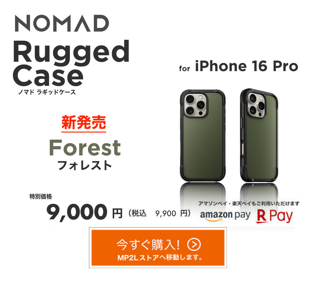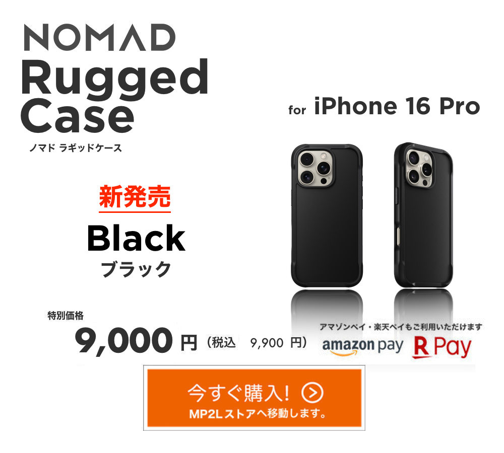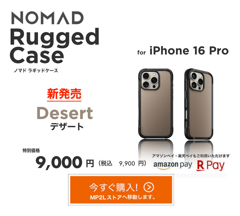 NOMAD社のFKMエラストラマ仕様スポーツ系バンドシリーズ【NOMAD Sport Band(スポーツバンド)】【NOMAD Rocky Point Band(ロッキーポイントバンド)】【NOMAD Rugged Band(ラギッドバンド)】の各モデル、各カラーにも、このiPhoneケースのマッシブなデザイン、カラーがマッチング!FKMとPETが見事なタッグを組みます。