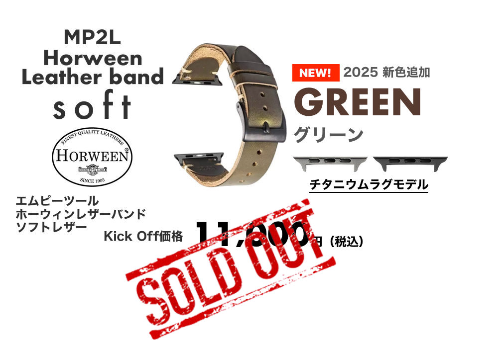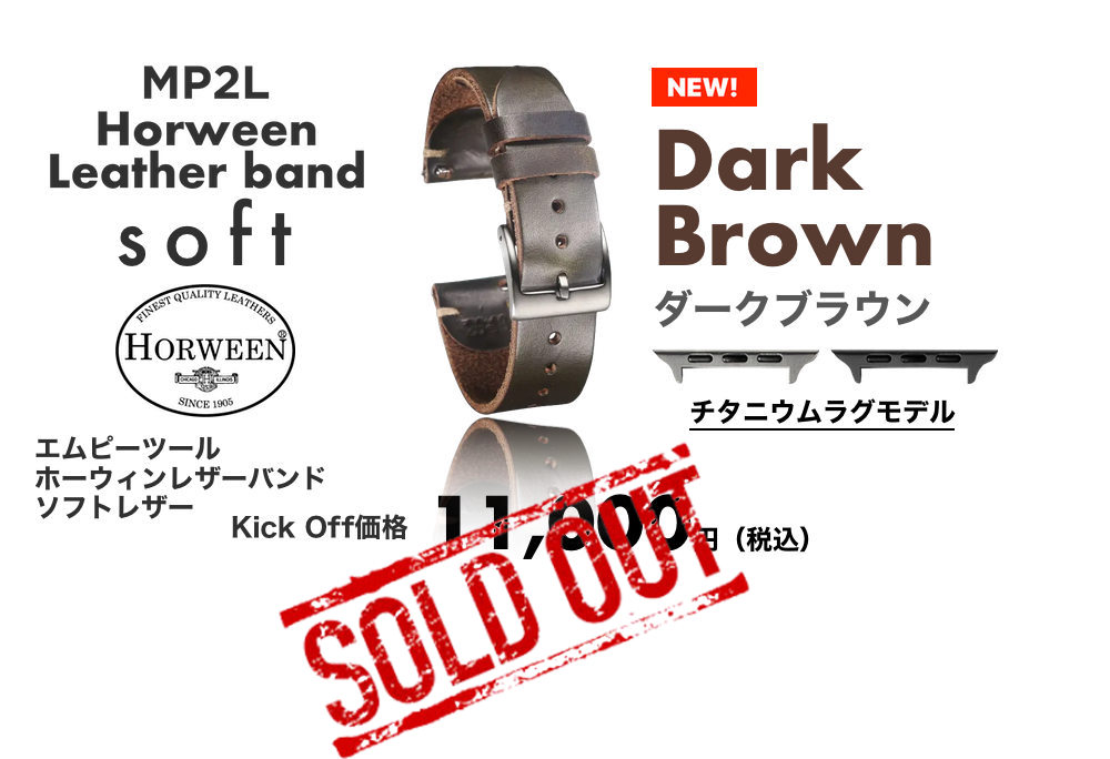 MP2L ホーウィンレザーバンド・ソフトモデルは、非常に柔らかいレザーに仕上げてあります。届いたその日から、あなたの手首に心地よい装着感を。