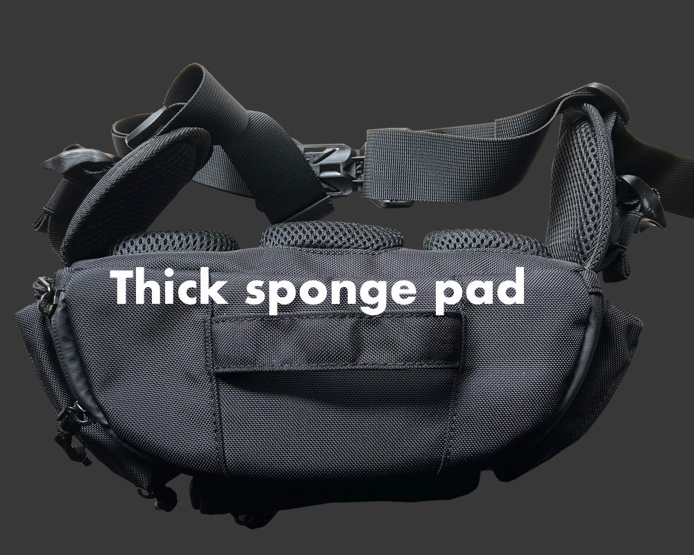 あなたの腰や背中に接する背面と側面には、特殊なメッシュ形状のスポンジパッドを搭載。人間工学で開発されたパッドが、あなたの身体のストレスを軽減します。また、iPhoneや収納アイテムをガードする耐衝撃のパッドとしても機能します。