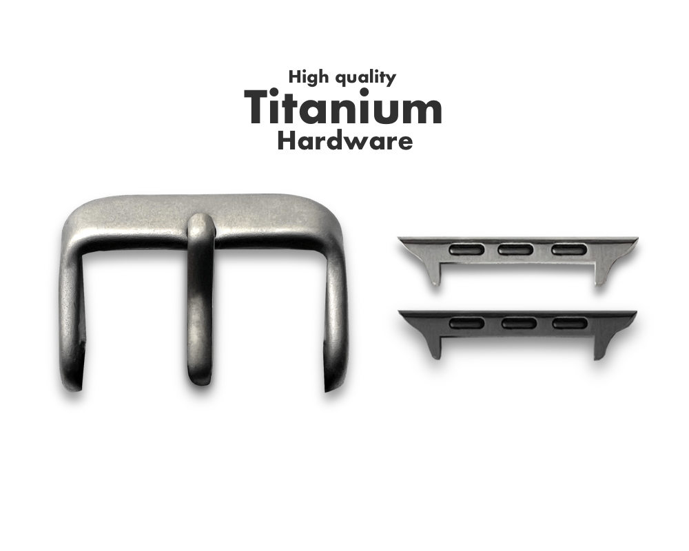 MinZ Scotchgard Leather Apple Watch Band スムースレザーのハードウェア(金具)類はチタニウムで構成されています。