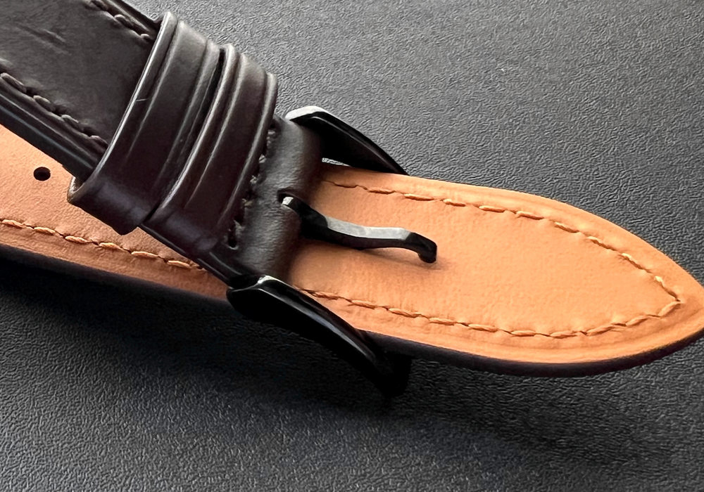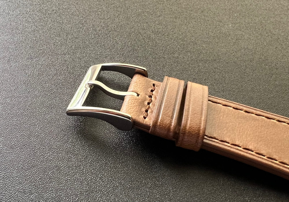 MinZ Horween Leather Band stitchは、平均2.5mmの厚めのデザイン。そして、それをしっかりと纏めてくれるのがこのステッチ。さらに、ステッチ自体が重要なデザインポイントにもなっています。