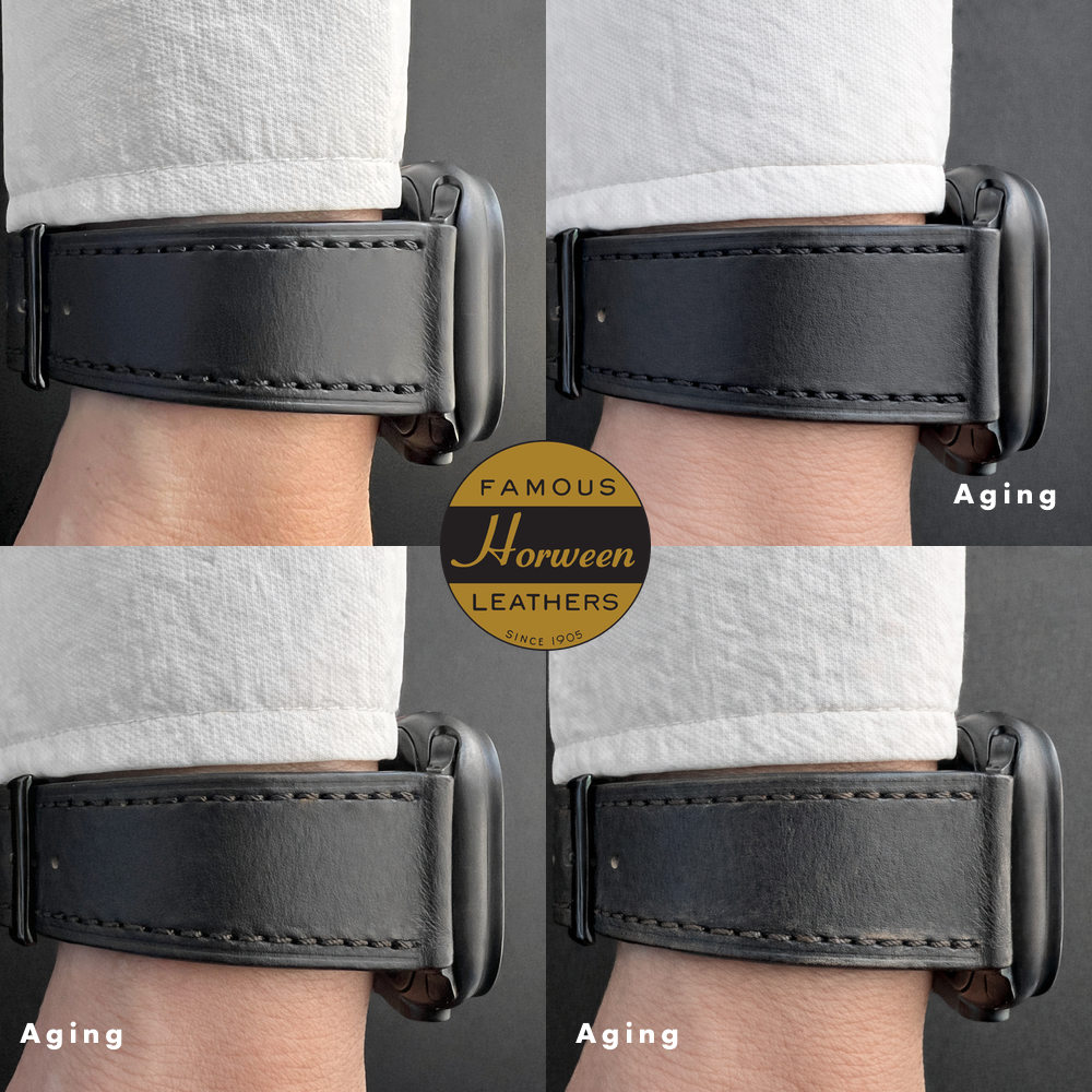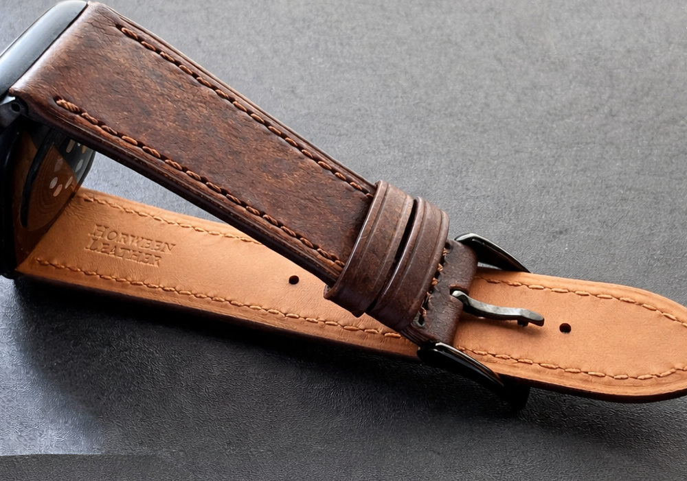 1905年創業・アメリカ最古のタンナー。シカゴホーウィン社レザー。世界最高峰のレザーにあなたのApple Watchを装着する。Horween社のクロムエクセル(CHROMEXCEL®︎)レザーには、天然のワックスとオイルが染み込んでおり、老舗タンナーのレザーを毎日、手首に纏う贅沢を味わうことができます。