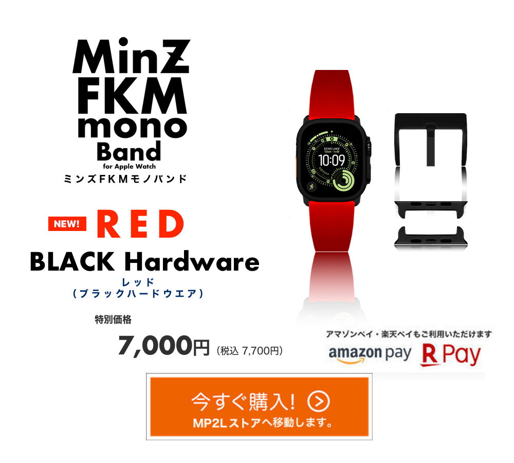 MinZ FKM mono Bandのバックルは、高品質のステンレススチール仕様。防水性にも優れています。