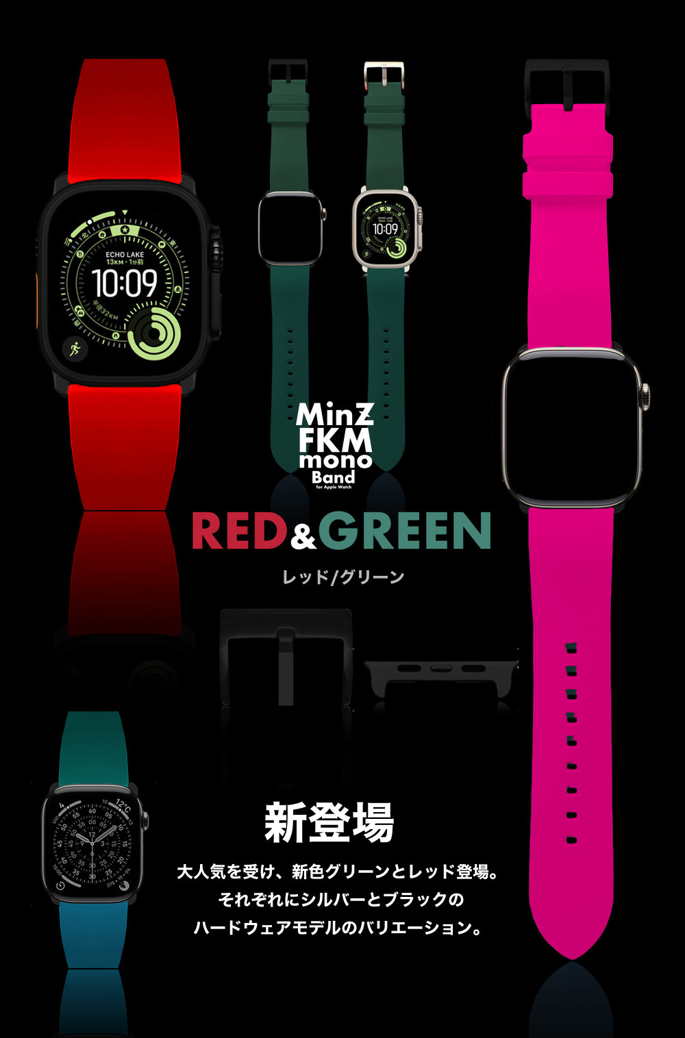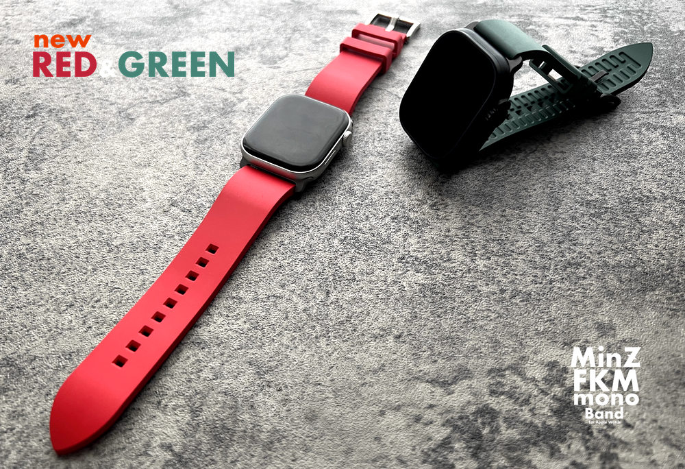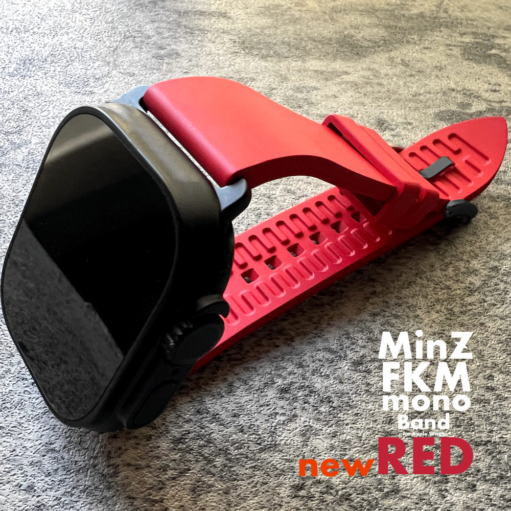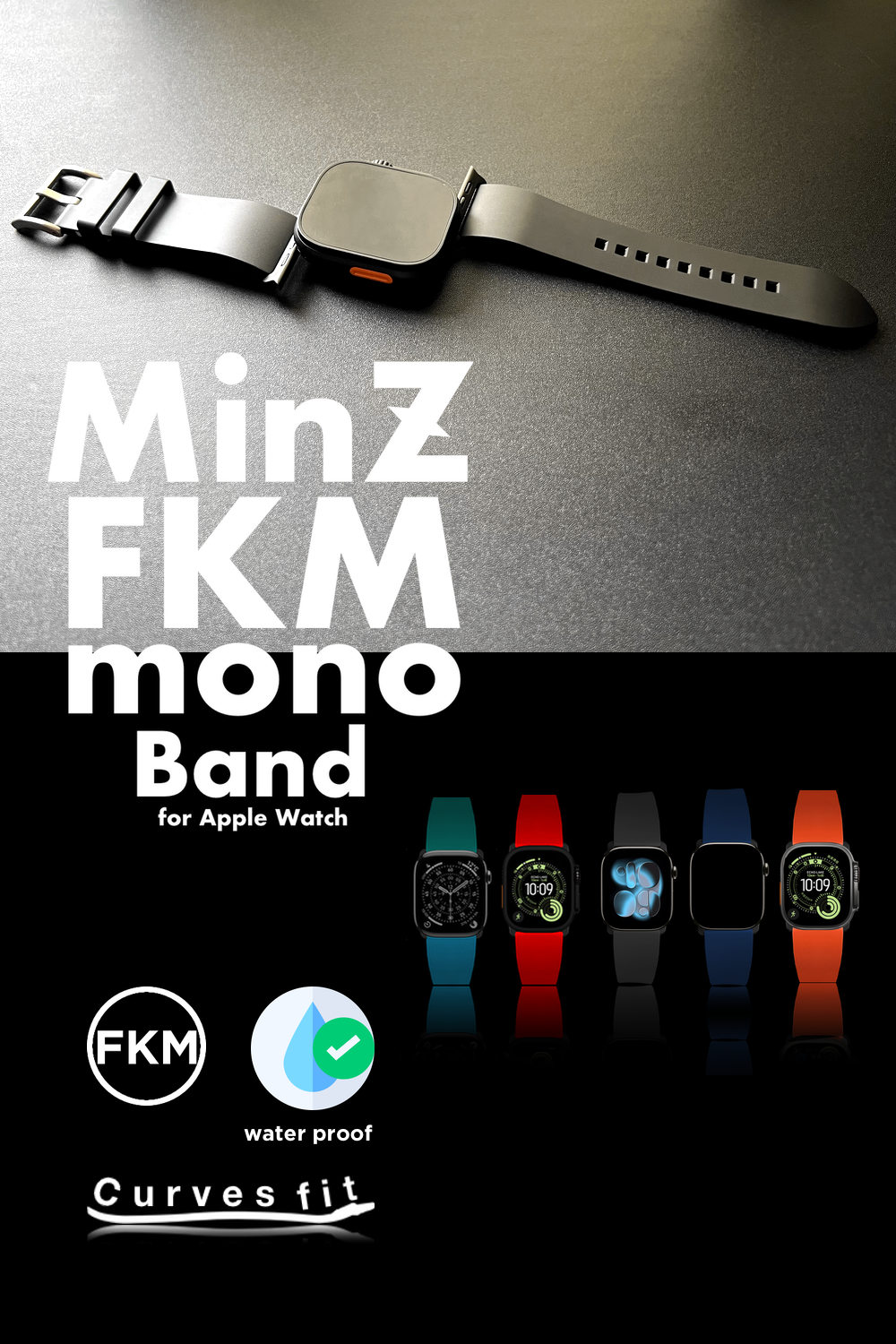 MinZ FKM mono Bandに使用されている高品質FKMは、シリコン系のバンドとは異なる質感。ペタペタとしたゴムのようなシリコンとはまったく異なり、サラサラとした「ソフトなプラスチック」のような感触です。そのため、埃もつきにくく、目立つこともありません。