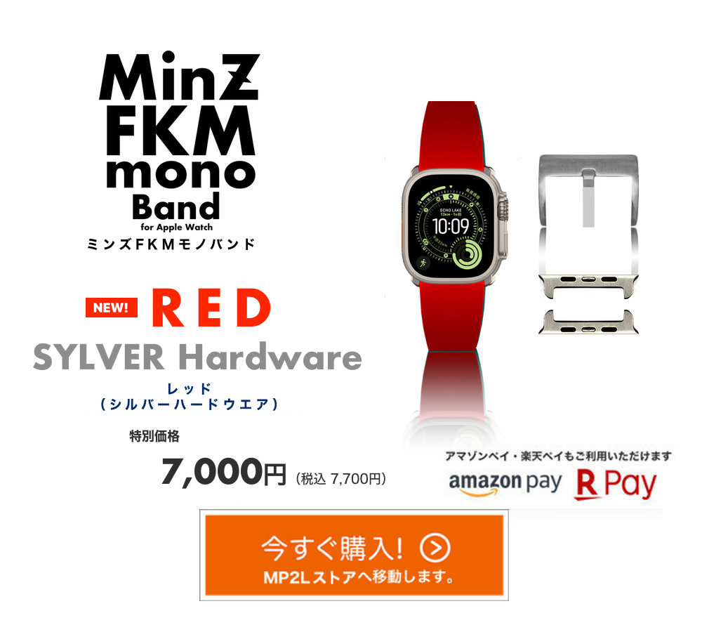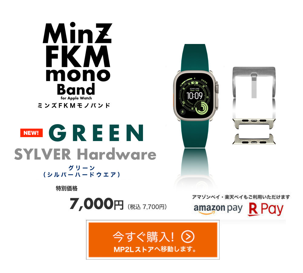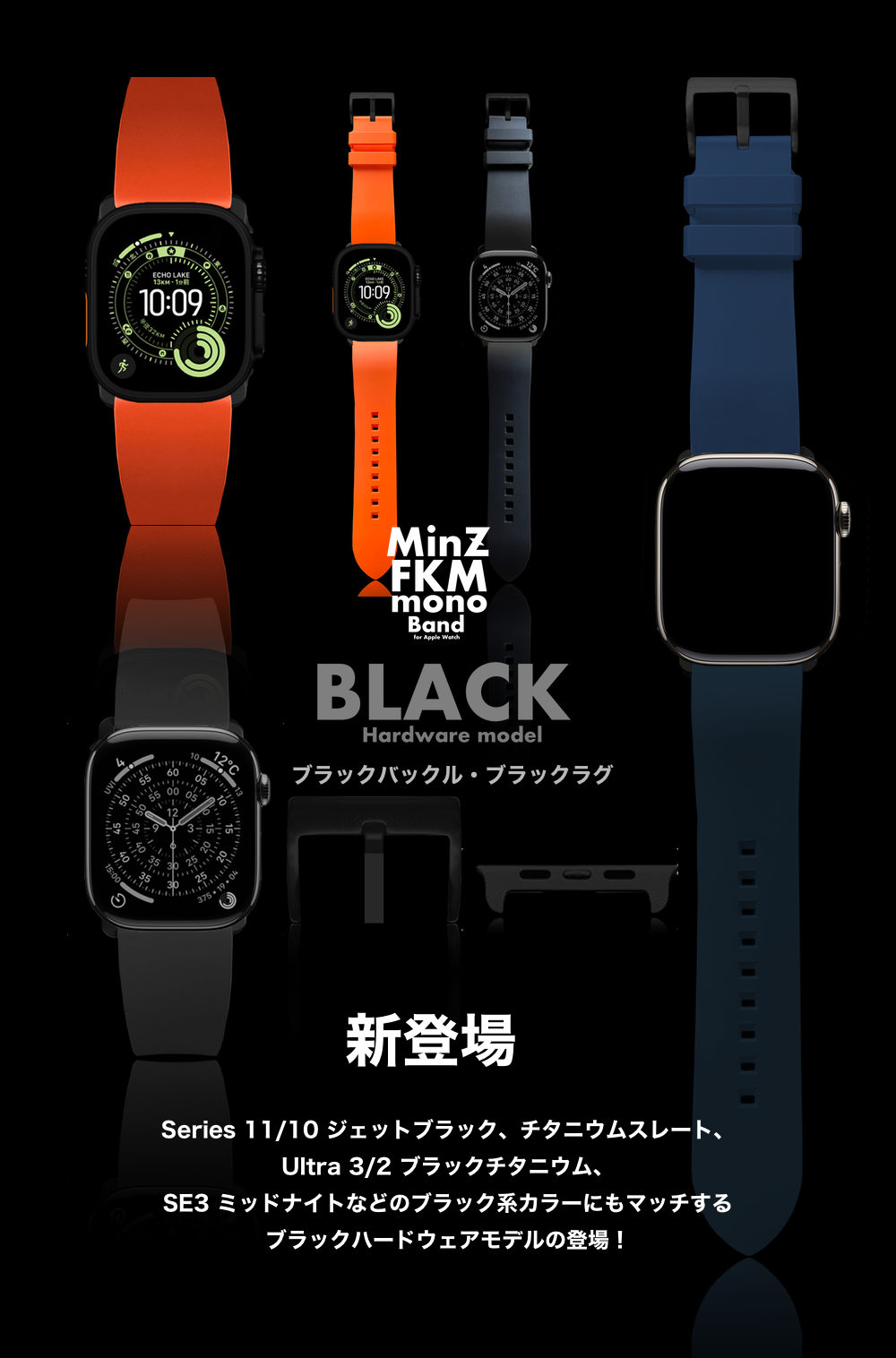 MinZ FKM mono Bandに使用されている高品質FKMは、シリコン系のバンドとは異なる質感。ペタペタとしたゴムのようなシリコンとはまったく異なり、サラサラとした「ソフトなプラスチック」のような感触です。そのため、埃もつきにくく、目立つこともありません。
