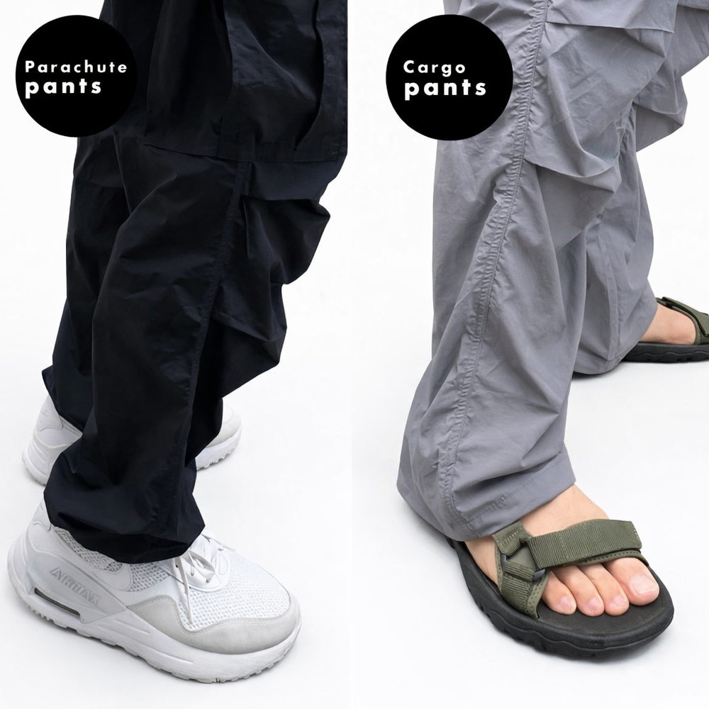ロングパンツの裾部分は、内側のドローで絞りがOK。裾を絞ったパラシュートパンツスタイルと、裾を広げたカーゴパンツスタイルとの2WAYのスタイルを楽しめます。