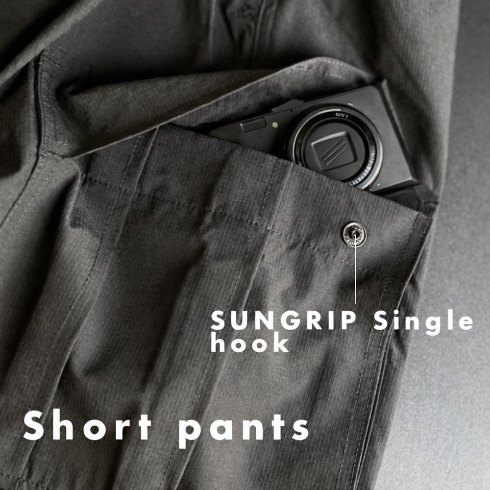 頻繁に使用するパンツのホックやジップの品質は重要です。ロングパンツは、YKK社製ホック。ショートパンツは、SUN GRIP製。どちらも国内発の信頼あるパーツを使用しています。