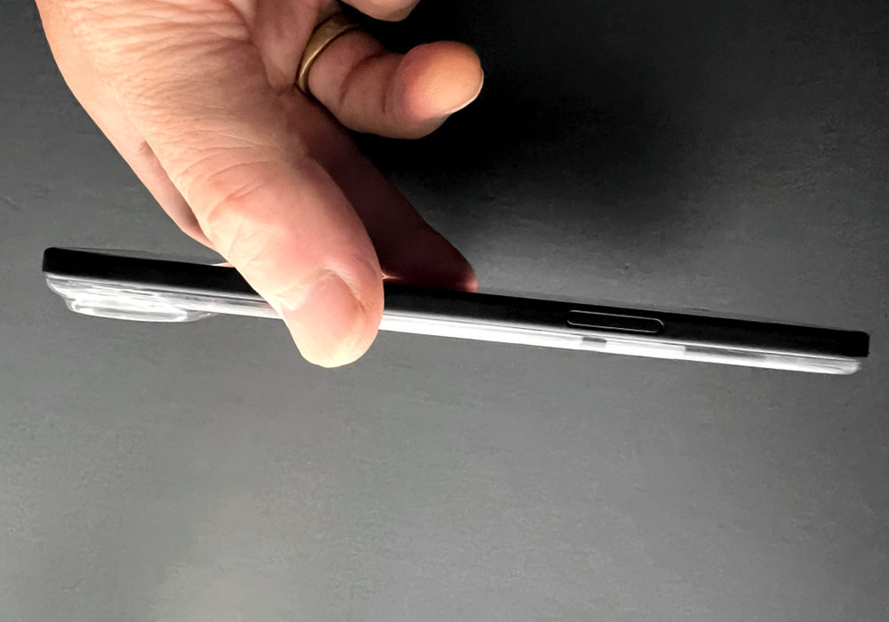 薄さ・カラー・素材の質感この3つのビジュアルの特長が、側面を塞がないことにより、すべて堪能できます。