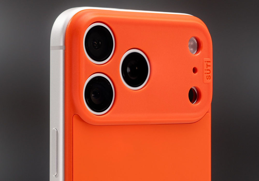 ご存知、iPhone 17から搭載されている、「カメラレンズモジュール」。あのワイドになった突起部。通常、多くのiPhoneケースはここを開口したデザインになっています。ところが、Suti PhoneBackは、なんとこのモジュールのための保護ケースを搭載しているのです!コレは安心!「側面は自由に、だけど背面は徹底的に守りますよ」という発想です。これは、裸でiPhoneを使う研究を行ってきたSuti PhoneBack社が、最も保護すべきポイントは、カメラレンズ周りだ、という結論から来たそうです。