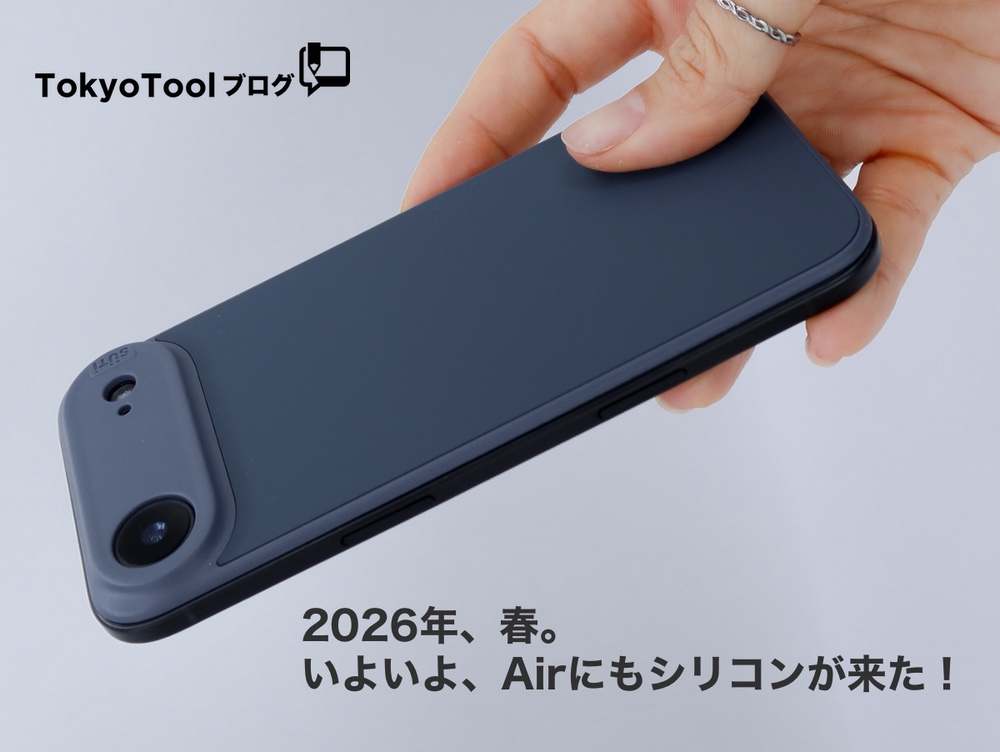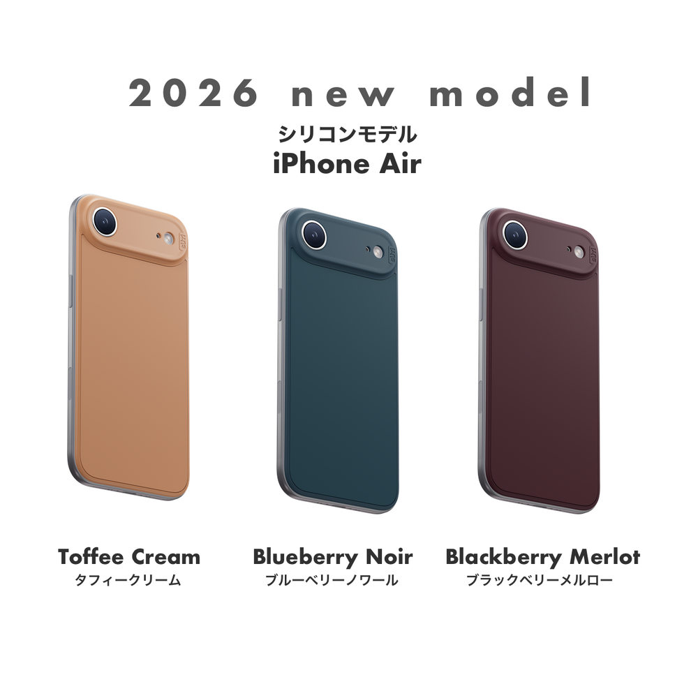 まずは、待望のiPhone Air用のクリア以外のモデルが遂に登場。3色のシリコンモデル。ブラックとかホワイトではなく、「大人なカラーリング」というのが技あり!iPhone Airの薄さを隠さずに、安定のグリップ感で。