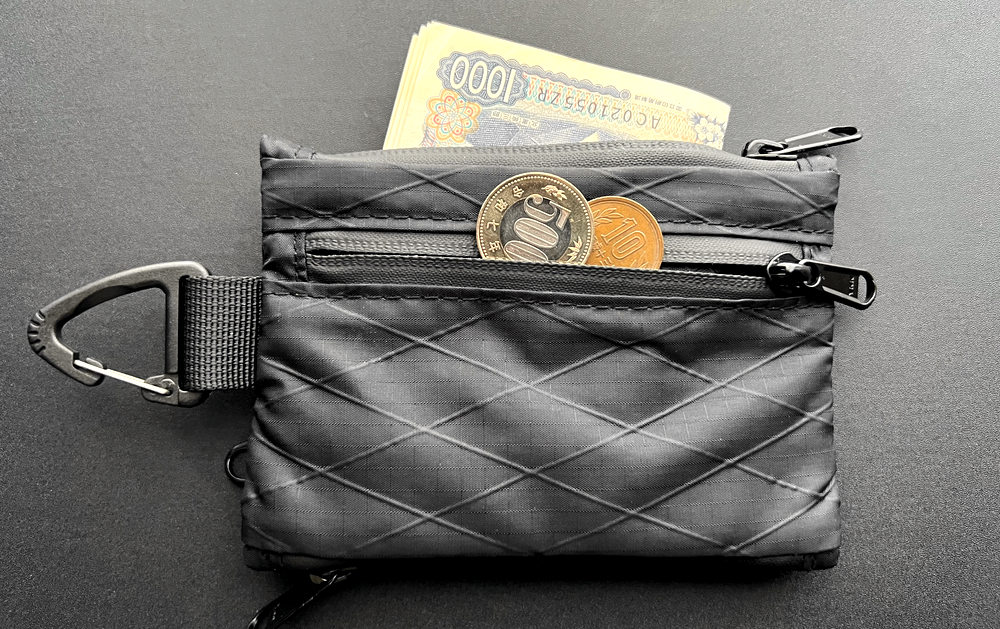 当然のことながら、財布としても、バッチリ使えます。硬貨はジップポケットに。紙幣なら二つ折りでメインポケットに。