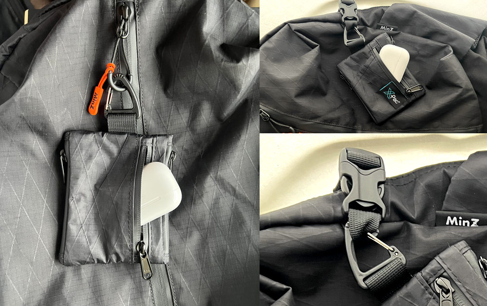 【S】【M】そして、そのカラビナ!もちろん、様々なバッグに装着OK。ジップ、ループ、タブなどにカラビナを装着。あなたの使っているバッグの機能性が爆アガリ。