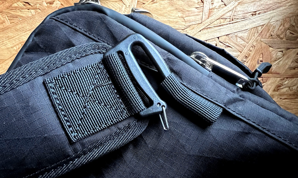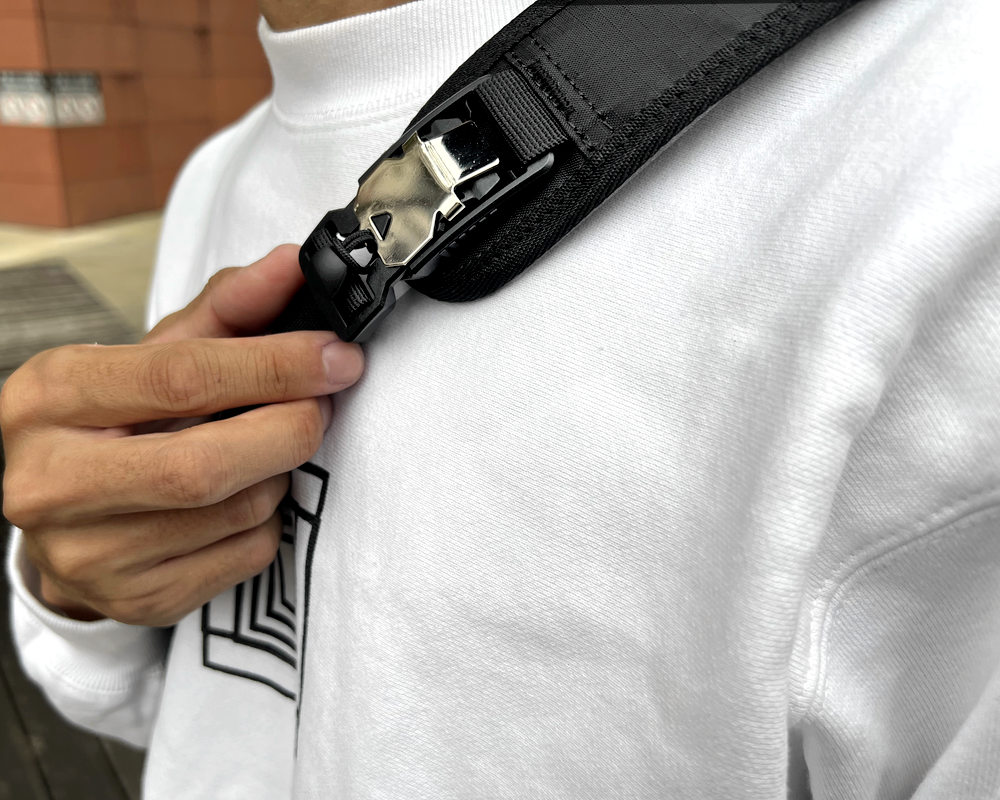 ストラップにもX-Pac® VX07を使用。ワンタッチで付け外しOKの独自マグネットバックルで、帽子着用時などもスムースに脱着。さらにストラップは簡単に本体から外すことも可能。簡易ハンドルが搭載されているので、ミニブリーフバッグとしても。