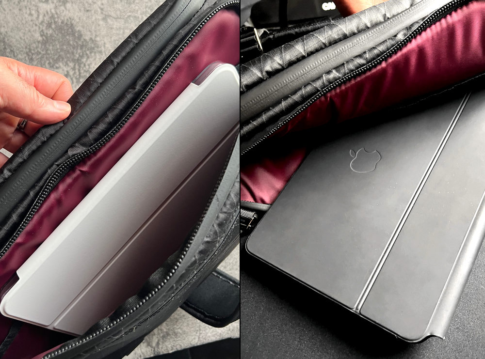 MinZ X-SLINGは、数々の機能アイテムが搭載され、保護パッドも内蔵されていますが、わずか540グラム。「iPad/MacBookAirは、軽いバッグで持ち歩く」が、正解です。