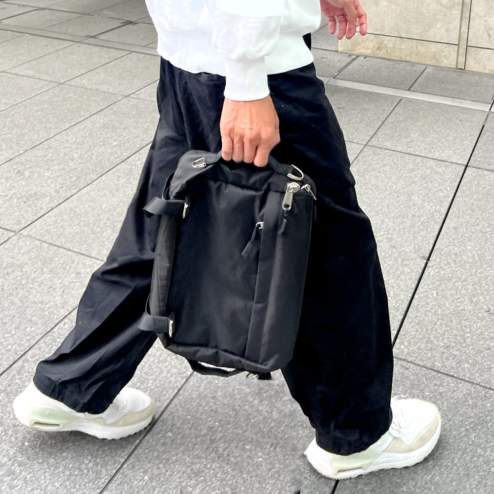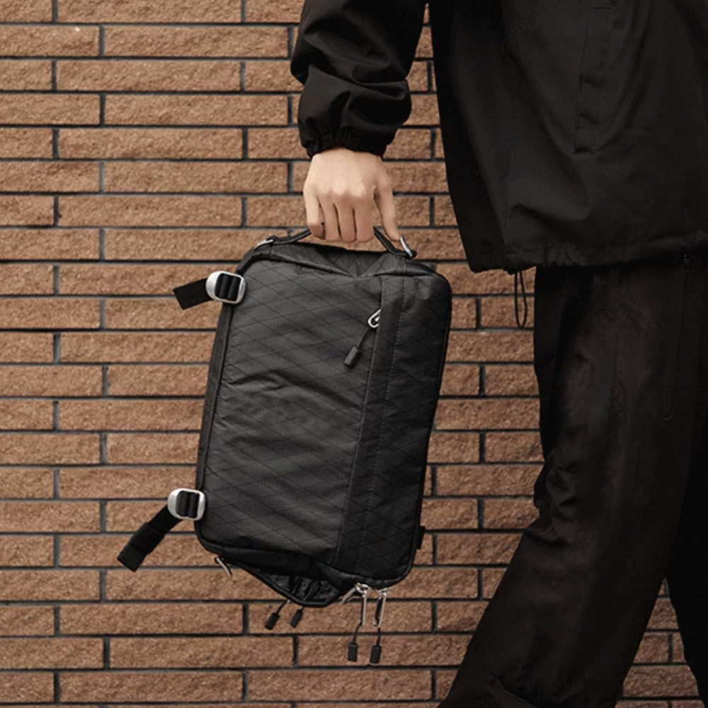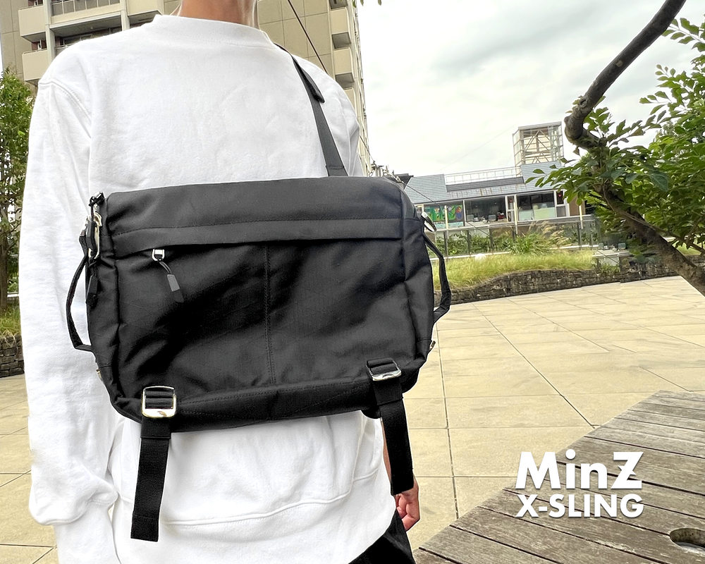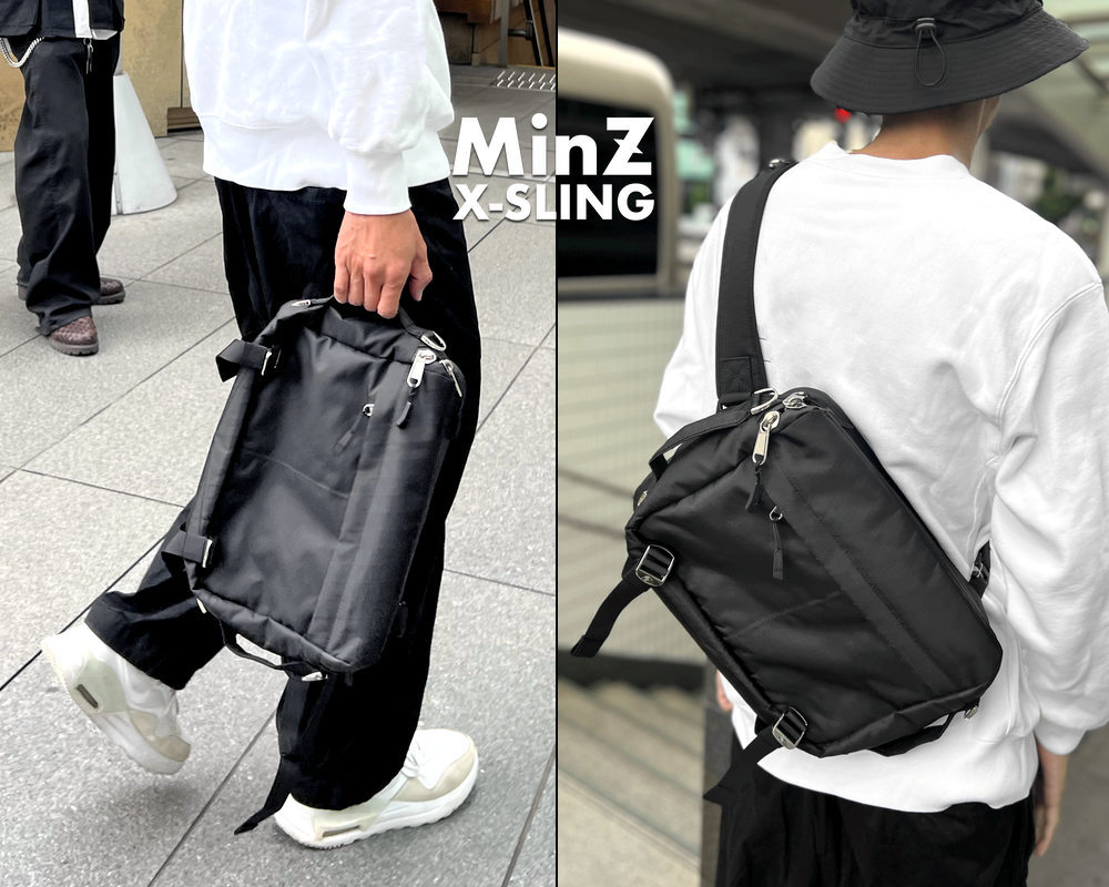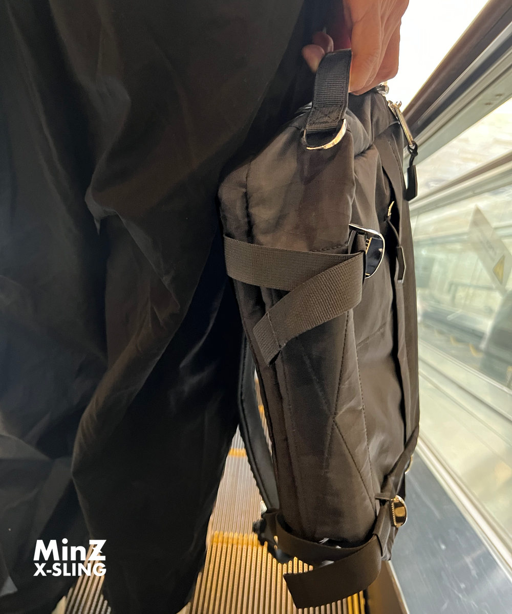 MinZ X-SLINGには簡易ハンドルが搭載されているので、ミニブリーフバッグとしてのスタイルでも使用できます。ストラップを本体から外して、スッキリしたフォルムでミニブリーフバッグとして使用できます。