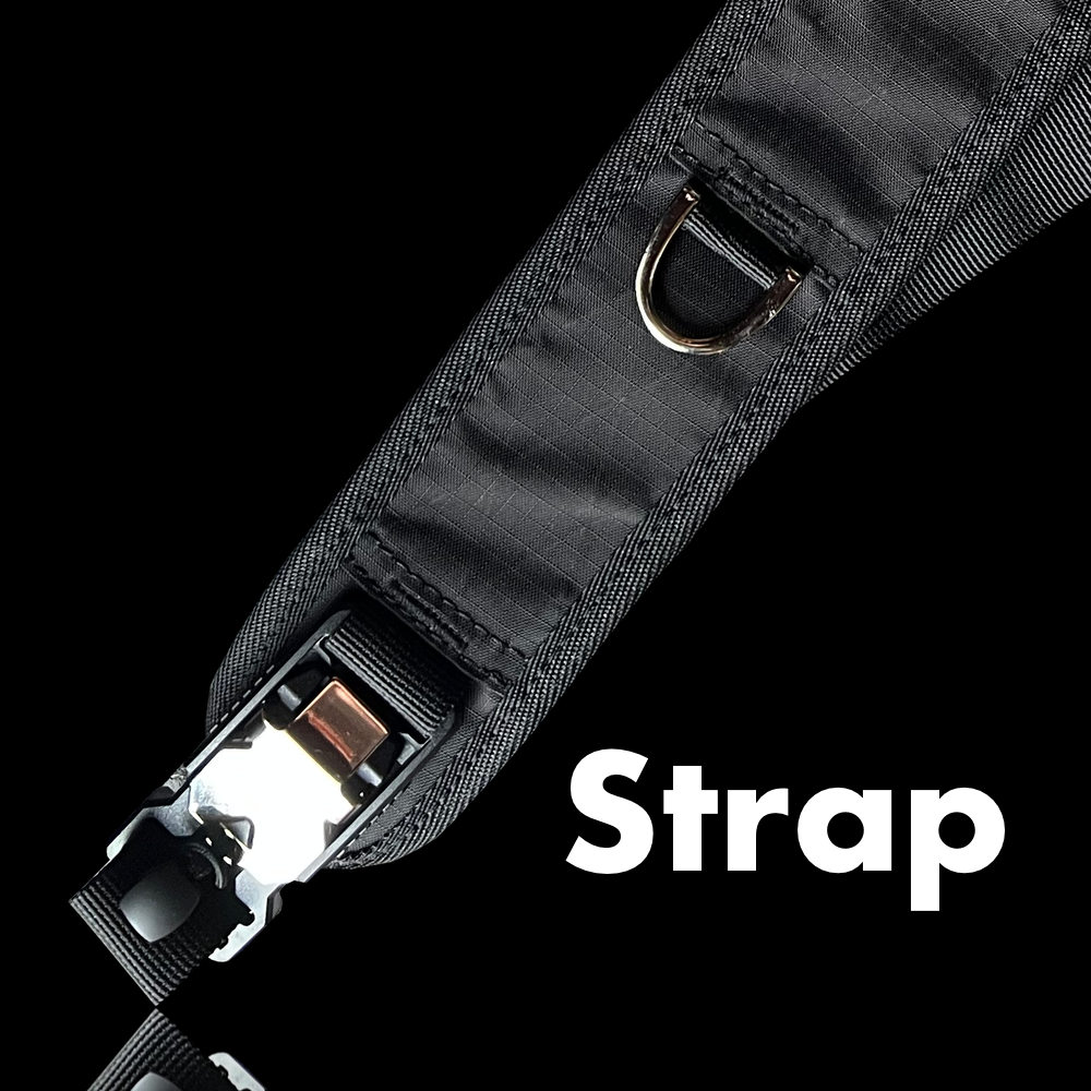 ストラップは、X-PAC VX07、シートベルト強度のナイロン、パッドで構成されています。ストラップ自体が軽く、肩への負担も軽く。