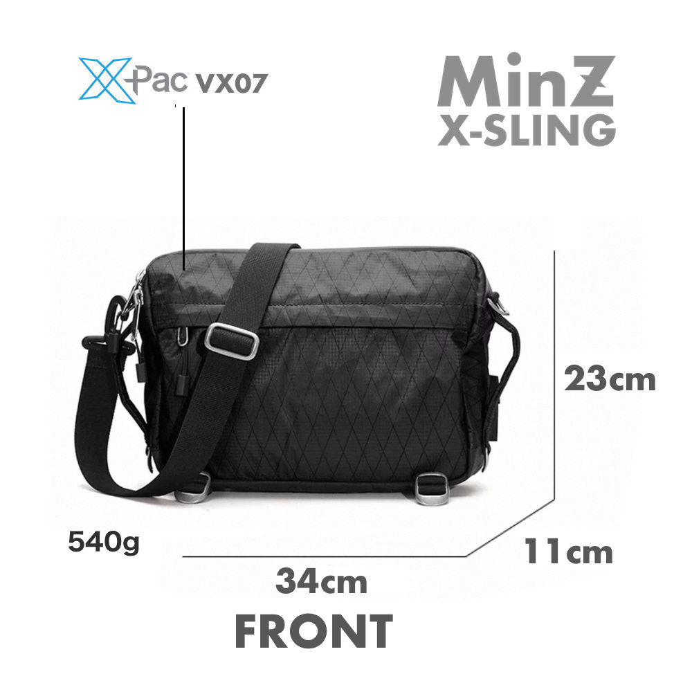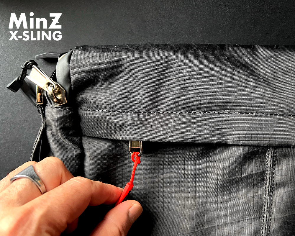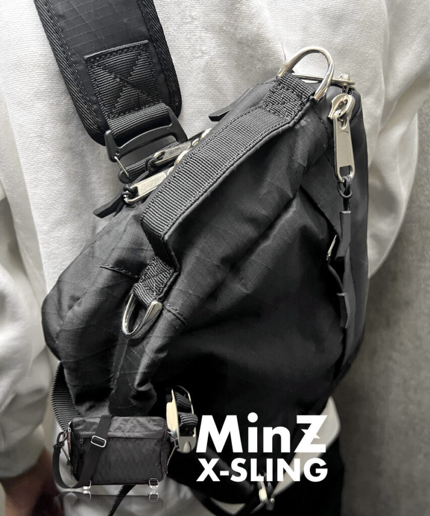 セイルクロスで世界トップクラスのシェアを独占するディメンョンポリアント社の新素材X-PAC(エックスパック)。MinZ X-SLINGには、この素材の進化バージョン<X-Pac VX07>を使用。<リップストップ>を加えることにより、さらなる軽量性と高い耐引裂性の頑丈な組み合わせに成功しています。