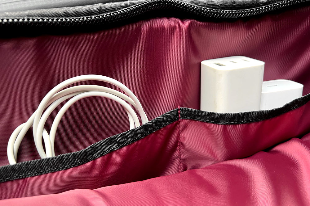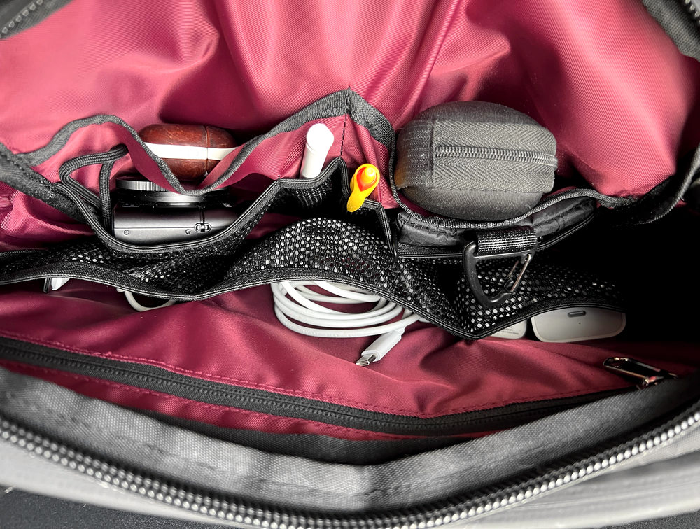 メインスペースは、アイテムを細かく整理収納することも、大きめのアイテムのための収納も、どちらにも使用できます。10個のポケットにより、ガジェット、ケーブル、その他機器など細かく整理収納。