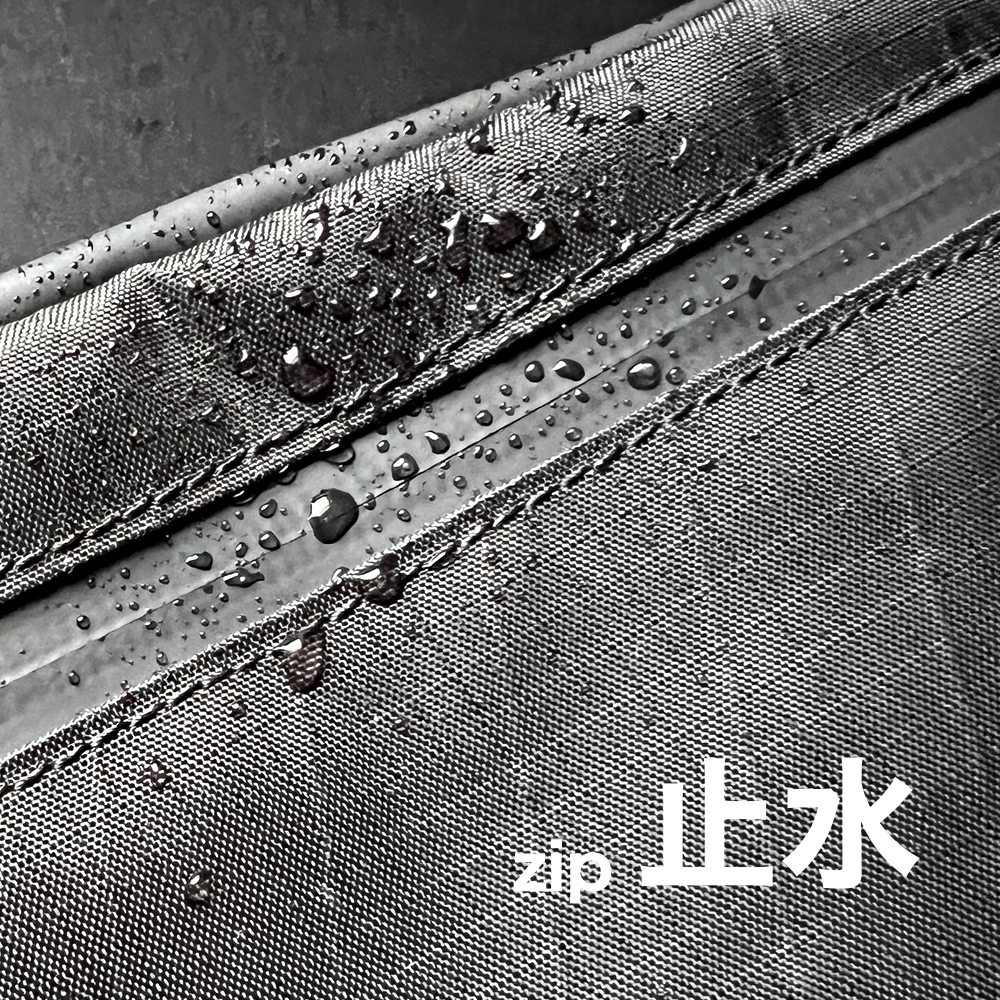 ジップはすべて止水仕様。X-Pac®とのコンビネーションで、iPad、MBAや収納アイテムへの水の侵入を防ぎます。