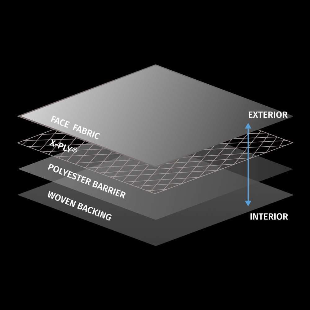 上部層のナイロンと下部層の撥水加工ポリエステルフィルムが圧着され、内部収納アイテムへの水の侵入を防御します。元々、ヨットの帆が源のX-Pac®ですから、その防水力は完璧なのです。ジップも全て止水ジップ仕様。X-Pac®とのコンビネーションにより、デバイスやアイテム収納スペースへの水の侵入を防御。