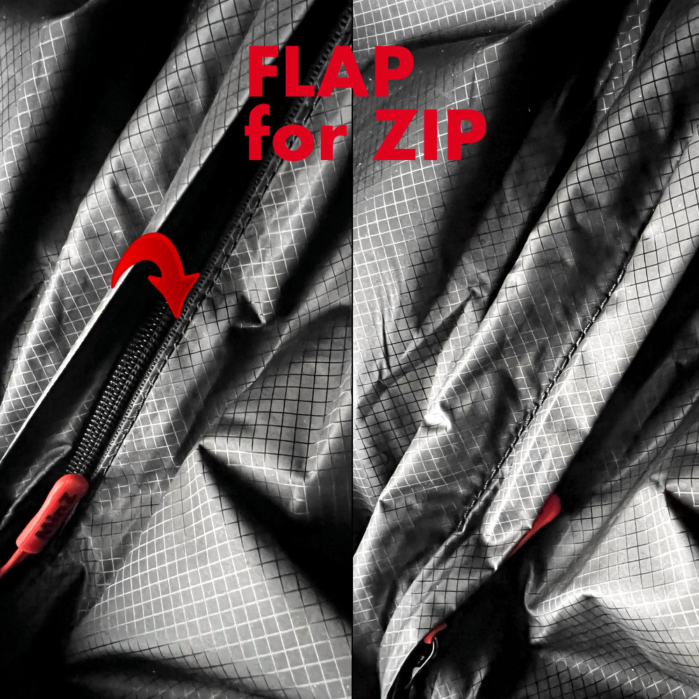 メインとフロントのジップには、フラップ(蓋)を搭載。雨をガードします。