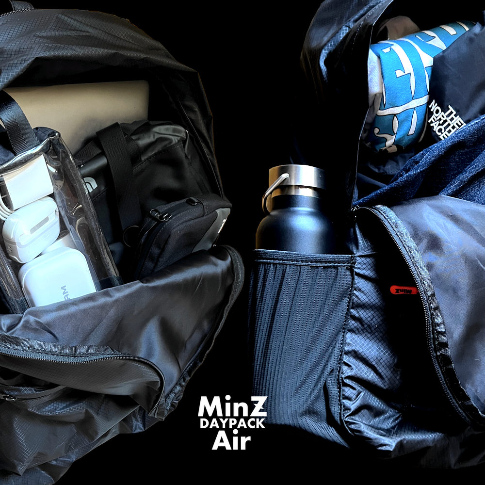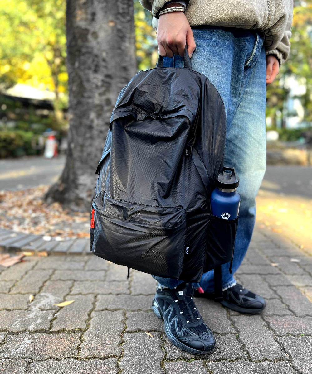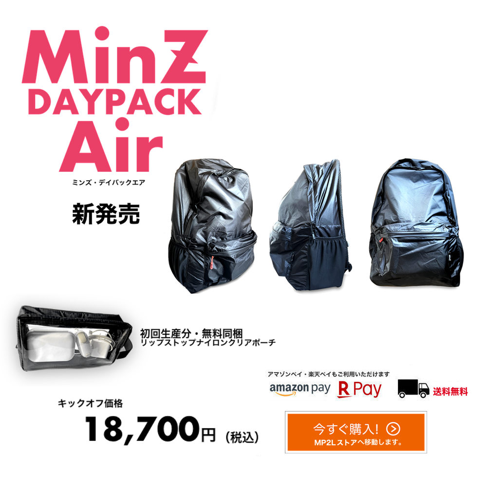 MinZ DAYPACK Airは、毎日の通勤から旅行までOK。30Lまで収納可能。【極薄・極軽ナイロン】で、通勤する。そして、旅行にも行く。