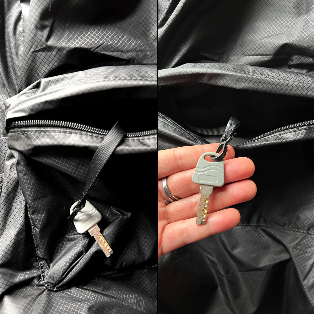 パンツにループに装着するキーリングなどをご利用の方は、自転車やLUUPなどの走行中は、ストラップに装着しておけば走行の邪魔になりません。