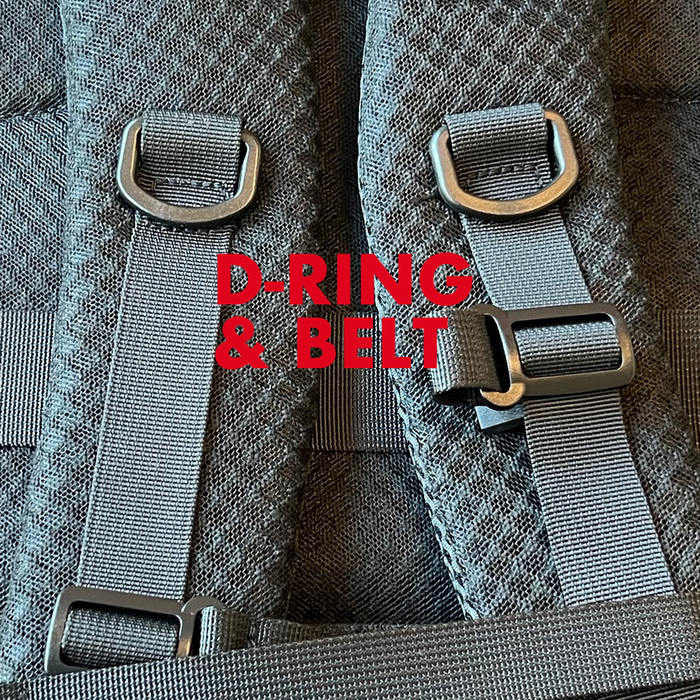 ストラップには、様々なタイプのポーチ、キーリングなどを装着できるベルト、D-リング搭載。AirPodsなどを、手元で出し入れ可能に。