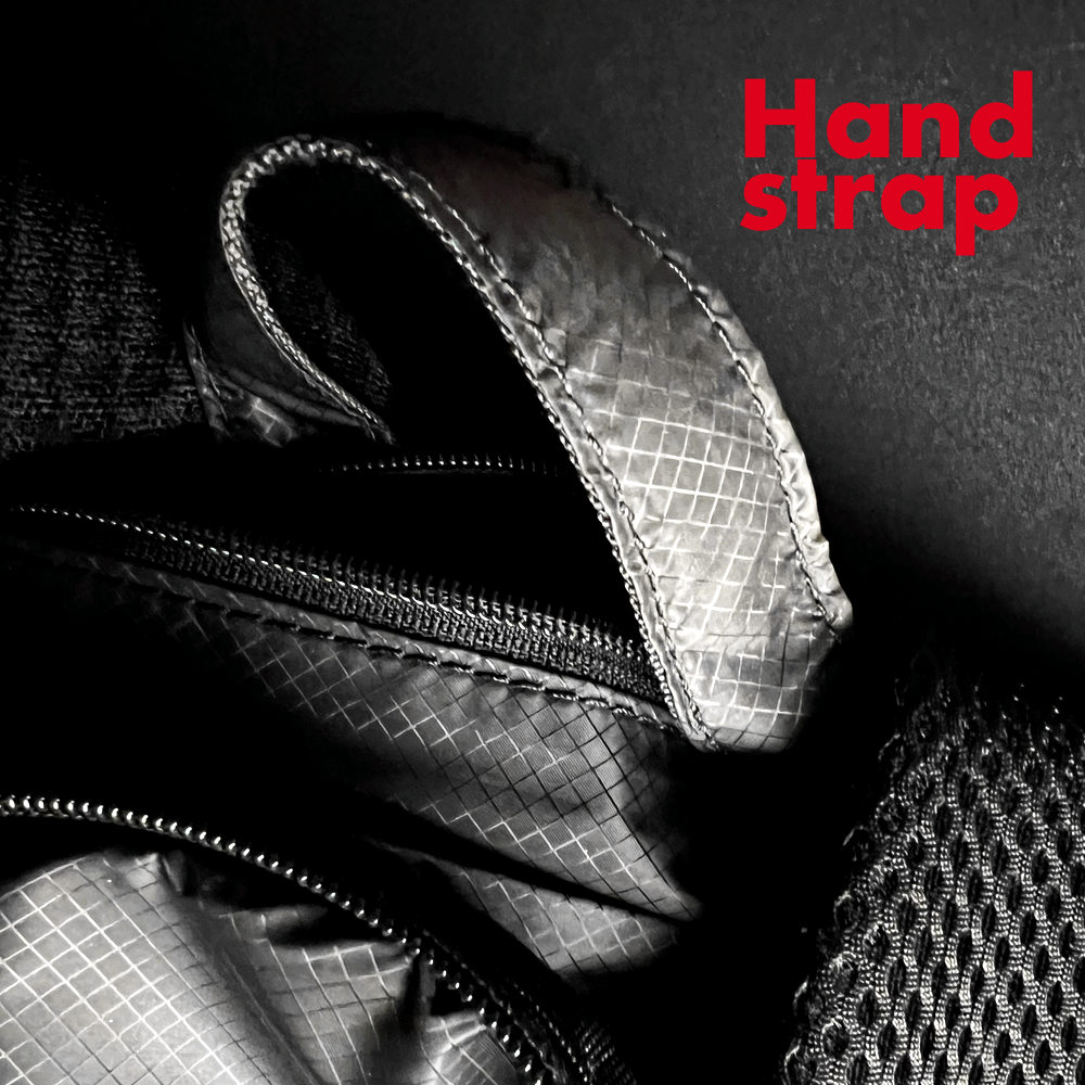 トップには、ハンドストラップを搭載。メインと同様のリップストップナイロン仕様になっていて頑丈です。
