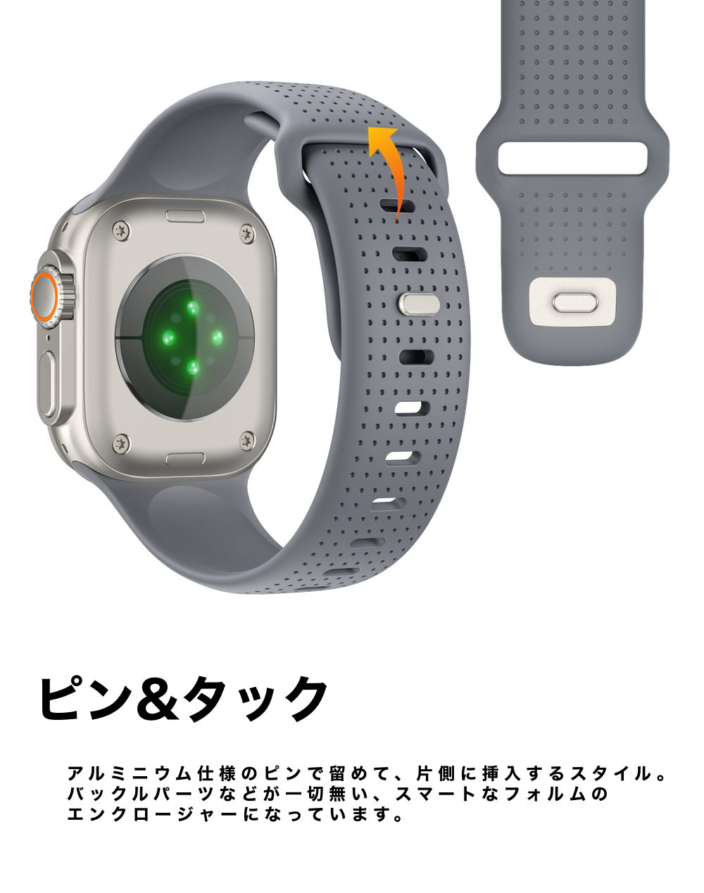 素早く、確実に手首に装着できるクロージャーピンシステム(ピン・アンド・タック)。