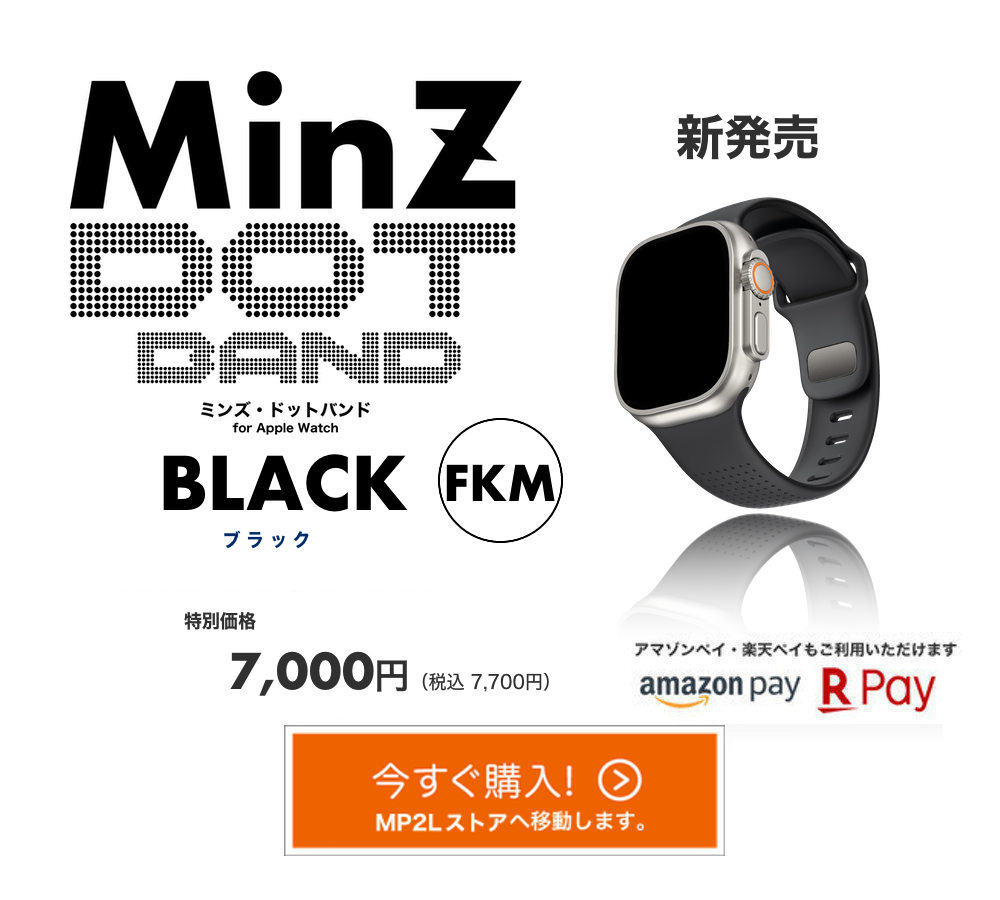 定番<MinZ FKM mono Band>に続き、MinZの高品質FKM(フッ素エラストマ)第二弾。