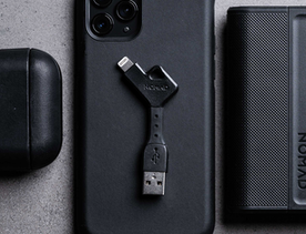 グラスファイバーとステンレススチールで構築されたカラビナ。Lightning端子とUSB-A端子、そして外出時のiOSデバイス充電時にも邪魔にならない短く、フレキシブルなケーブルを内蔵。MFi認定製品。充電だけでなく、Macとの同期もOK。「いつでも使える、Lightningケーブル」。